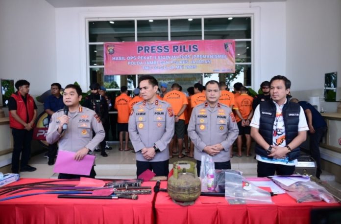“Selama 14 hari ini, kami berhasil mengungkap sejumlah kasus. Tercatat ada 10 laporan polisi dengan 32 tersangka yang kini sedang diproses hukum,” ujarnya dalam konferensi pers di Mapolda Jambi, Kamis (15/5/2025).