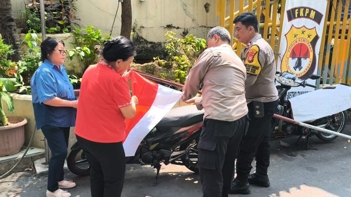 Tak ketinggalan, Aipda A. Siregar, Bhabinkamtibmas Kelurahan Mangga Besar, mengajak warga di Jalan Ubi RT 02/01 untuk mengibarkan bendera sebagai penghormatan kepada para pahlawan yang telah berjuang demi kemerdekaan.