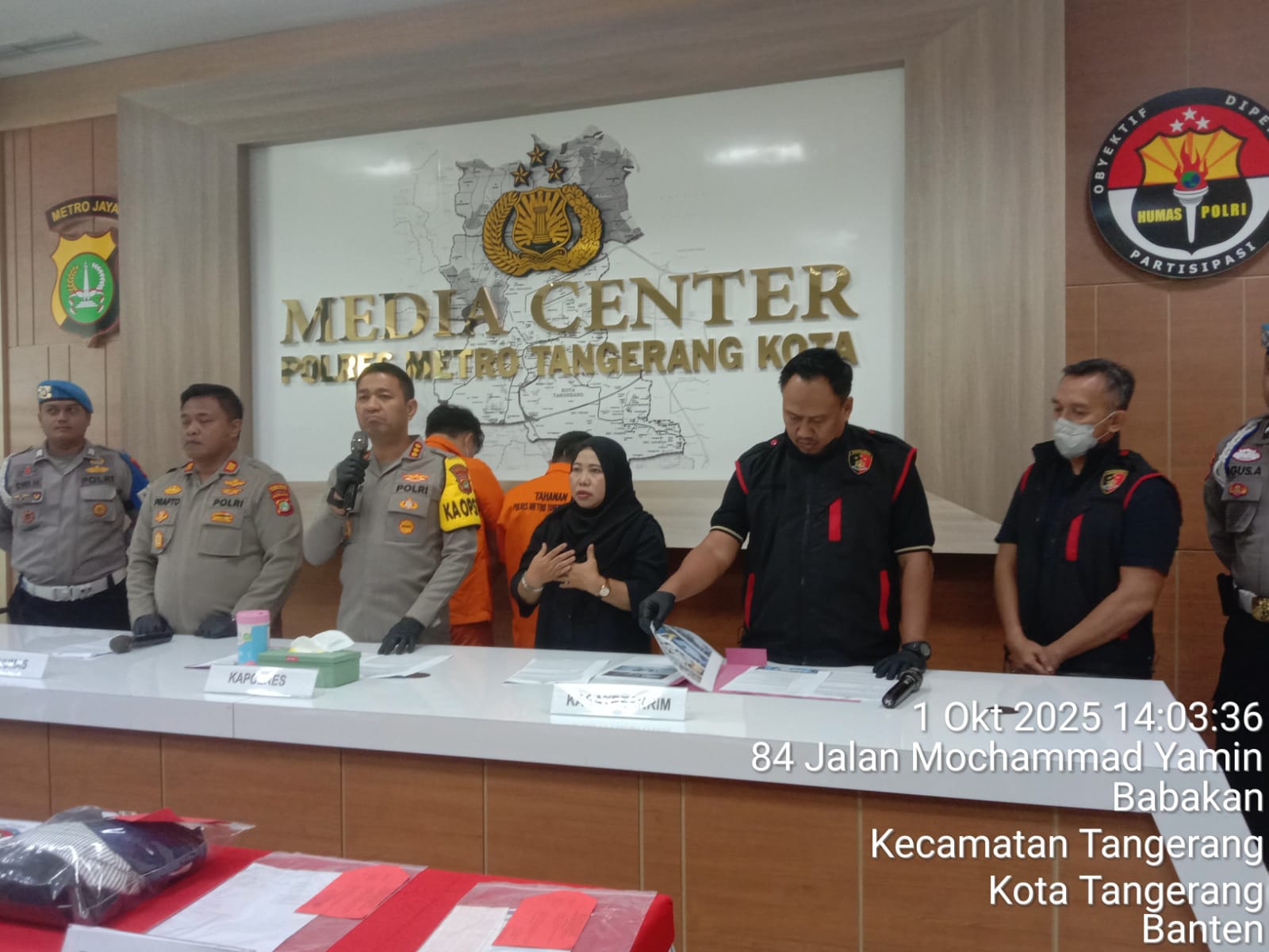 TANGERANG, jurnalfakta1.com – Polres Metro Tangerang Kota menggelar konferensi pers terkait pengungkapan kasus kematian seorang perempuan muda di Hotel Golden Tulip, Kota Tangerang. Polisi menetapkan dua orang pria sebagai tersangka dalam peristiwa yang diduga akibat kelalaian setelah pesta narkoba.