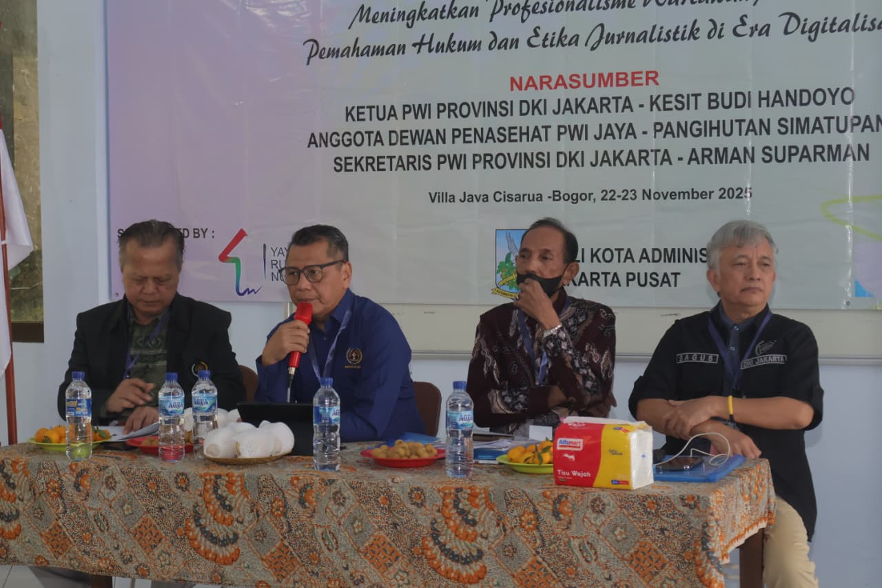 Selain Kesit, hadir pula Pangihutan Simatupang, Anggota Dewan Penasehat PWI Jaya, yang membawakan materi “Relevansi Kode Etik Jurnalistik dan Investigasi Reporting”.