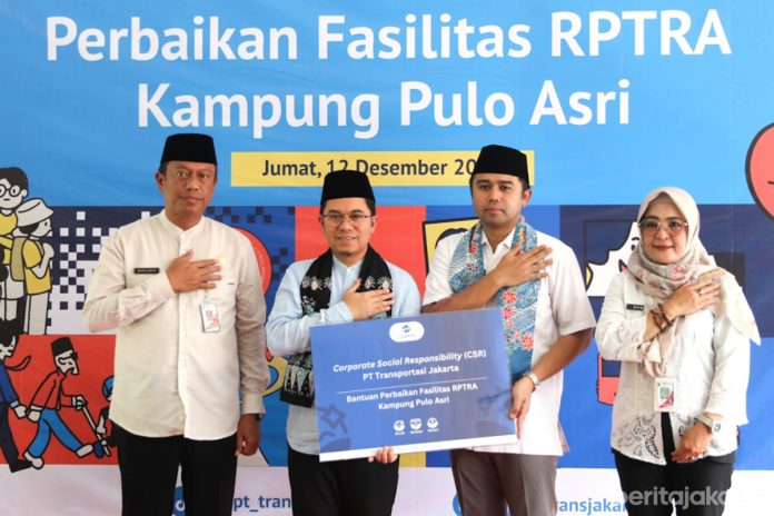 JAKARTA TIMUR — PT TransJakarta memberikan bantuan perbaikan sarana bermain anak di RPTRA Kampung Pulo Asri, Kelurahan Pinang Ranti, Kecamatan Makasar, Jakarta Timur, Jumat (12/12/2025). Bantuan ini merupakan bentuk kepedulian BUMD Pemprov DKI Jakarta terhadap lingkungan sekitar, khususnya fasilitas publik yang menjadi pusat aktivitas masyarakat.